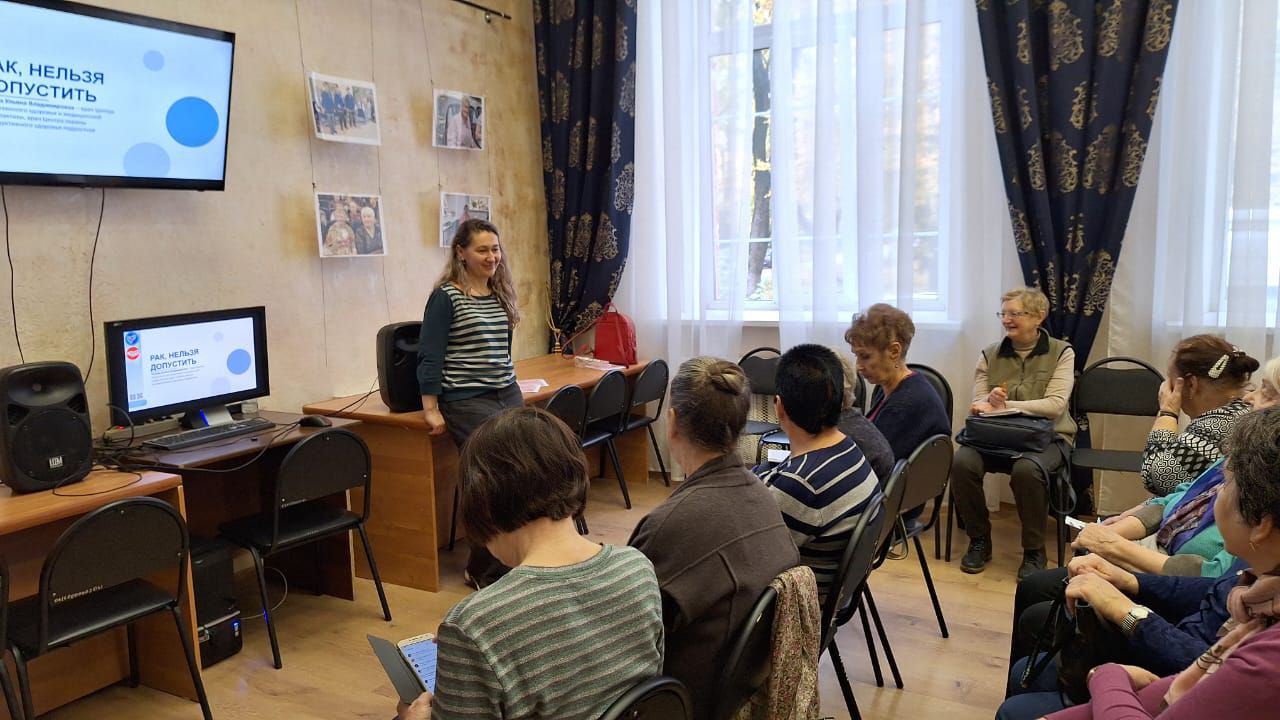 Текущая неделя проходит под знаком борьбы с раком молочной железы, поэтому и встреча участников программы «Активное долголетие» ОГБУ «Смоленский КЦСОН» с врачом Центра общественного здоровья и медицинской профилактики областного физдиспансера Ульяной Чемовой 15 октября была посвящена этой теме.