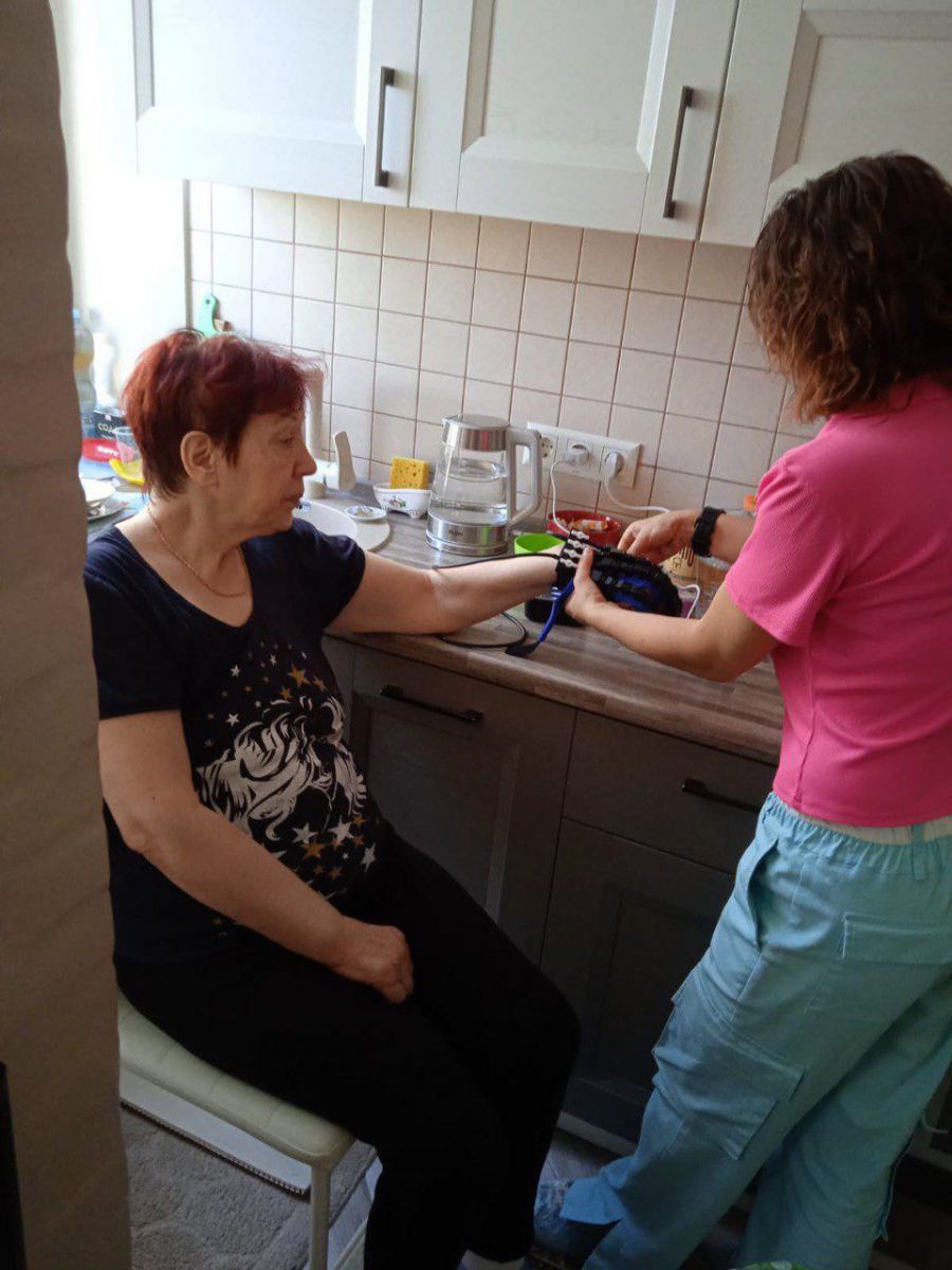 Специалисты, в числе которых эрготерапевт и физический терапевт, выезжают на дом к пожилым людям и инвалидам, начавшим утрачивать физические и когнитивные функции с тем, чтобы дать комплексную оценку их состояния и разработать индивидуальный план занятий.