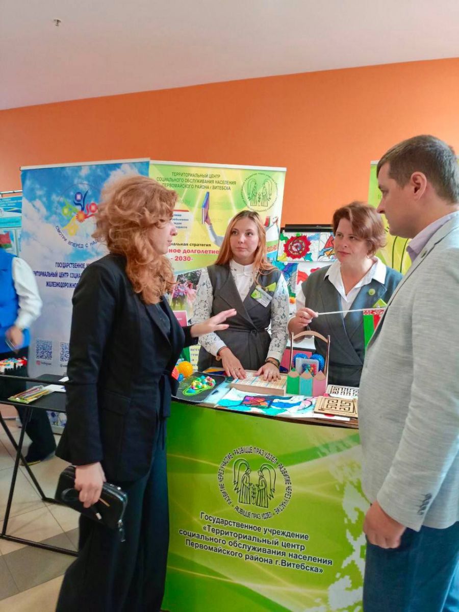 Смолян радушно встретили сотрудники ГУ «Территориальный центр социального обслуживания населения Оршанского района» и провели для них экскурсию по представленным площадкам, познакомили с презентациями проектов, демонстрирующих инновации в работе с инвалидами и пожилыми людьми.
