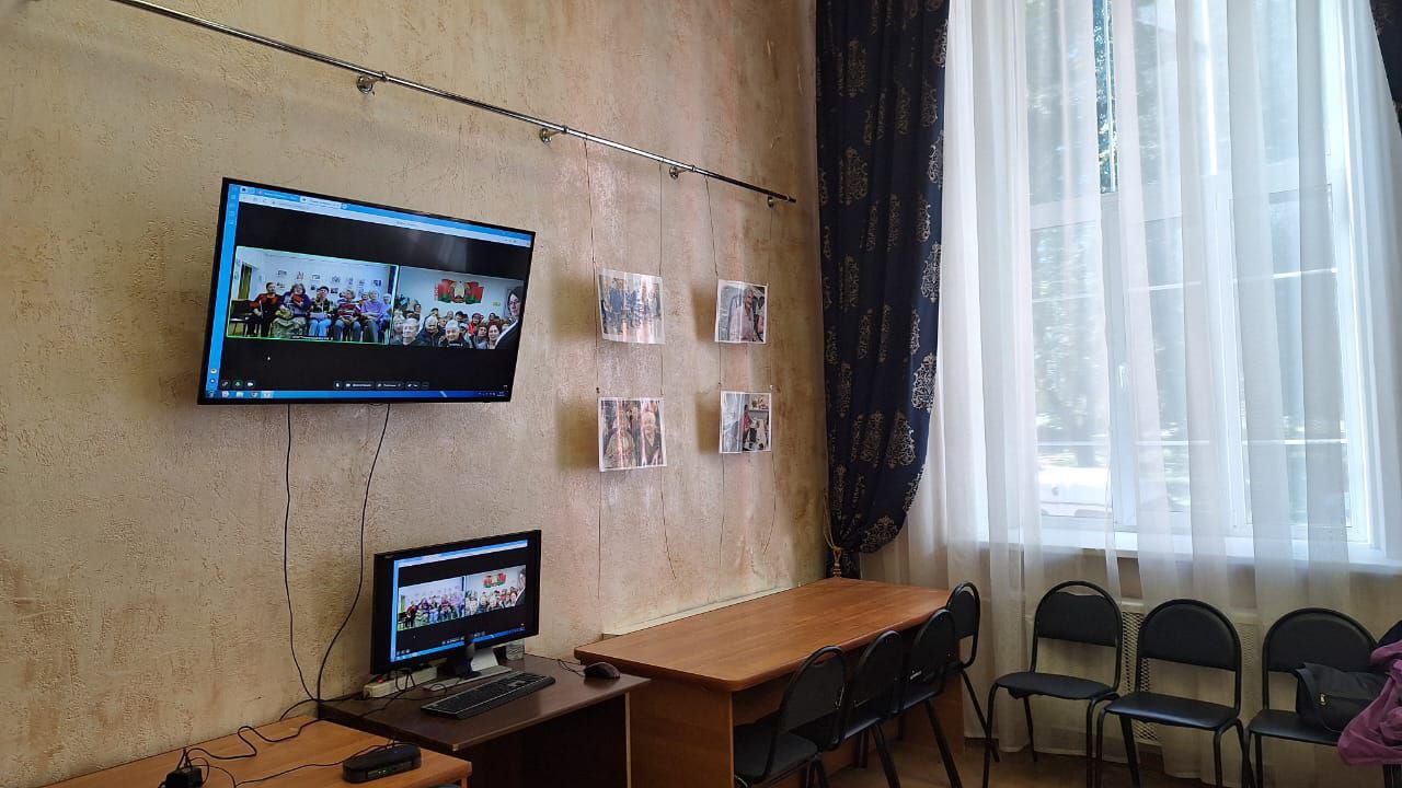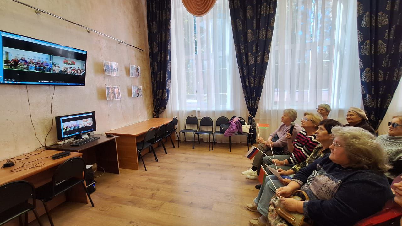 26 сентября участники программы «Активное долголетие» ОГБУ «Смоленский КЦСОН» пообщались с сотрудниками и подопечными Отделения дневного пребывания граждан «Поставского территориального центра социального обслуживания населения» (Беларусь) посредством телемоста.