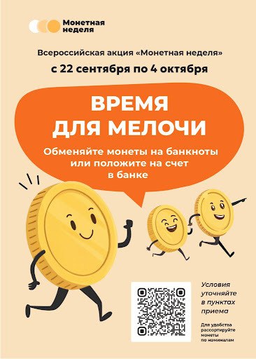 Примите участие во всероссийской акции «Монетная неделя», организованной Банком России, в ходе которой можно обменять монеты на бумажные деньги в магазинах и банках – участниках акции.
