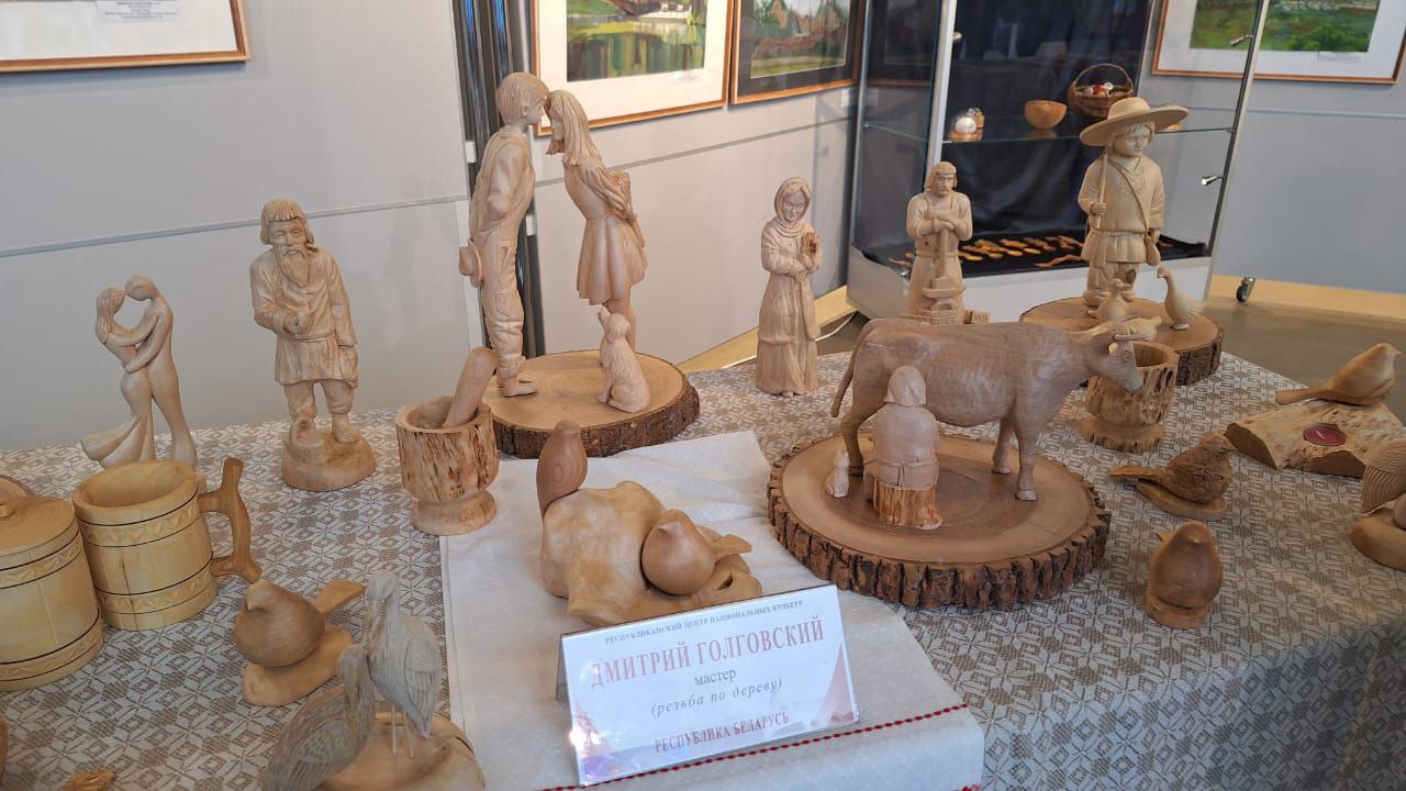 Рукодельные картины, куклы, фигурки, вырезанные из дерева, цепляющие глаз красивым орнаментом плетеные вещицы - чего тут только не было, просто глаза разбегались!