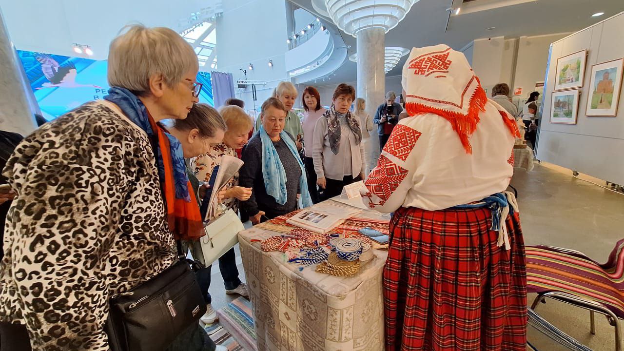 После концерта, ознаменовавшего открытие Дней культуры Республики Беларусь в Смоленской области 27 сентября, участники программы «Активное долголетие» ОГБУ «Смоленский КЦСОН» посмотрели выставку декоративно-прикладного творчества белорусских мастеров, развернувшуюся в одном из залов КВЦ имени Тенишевых.