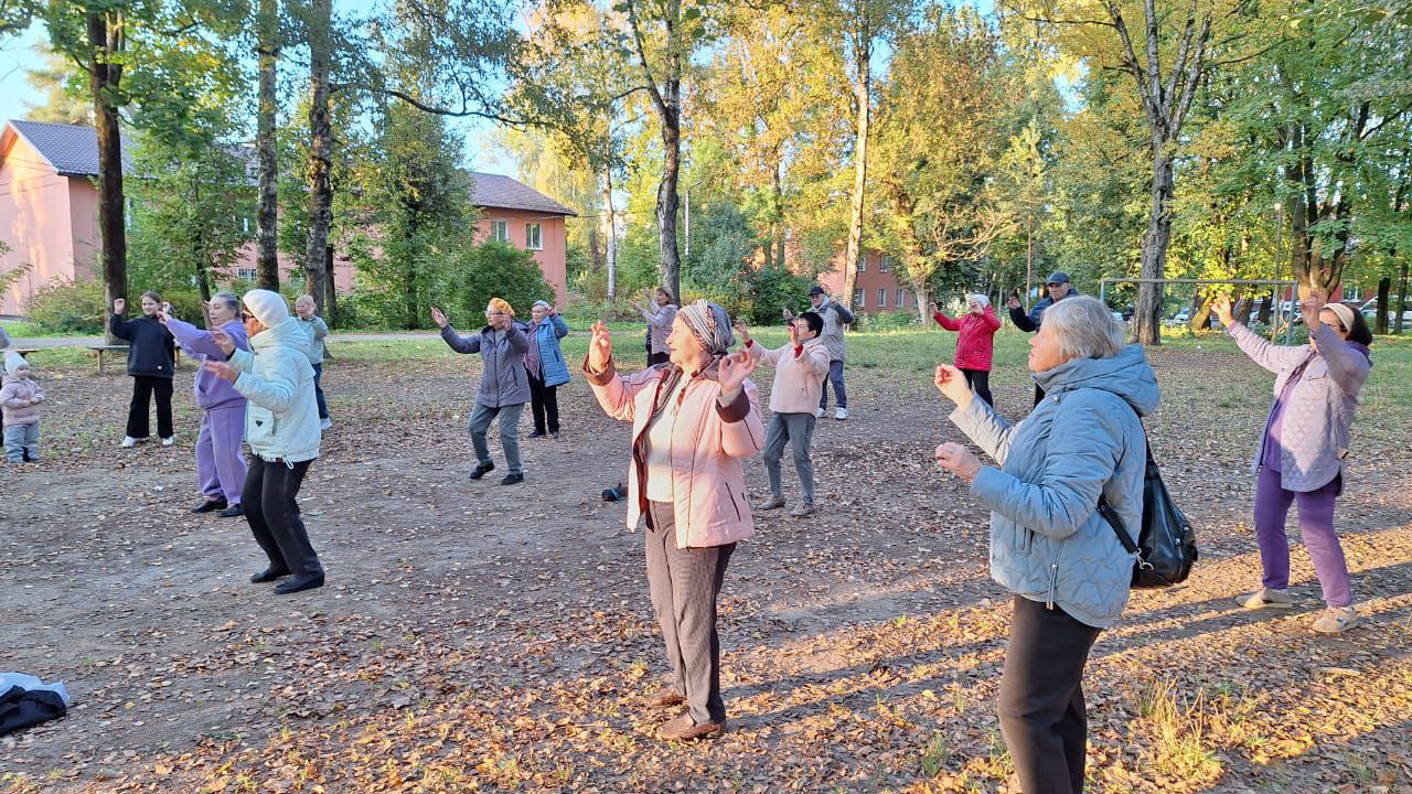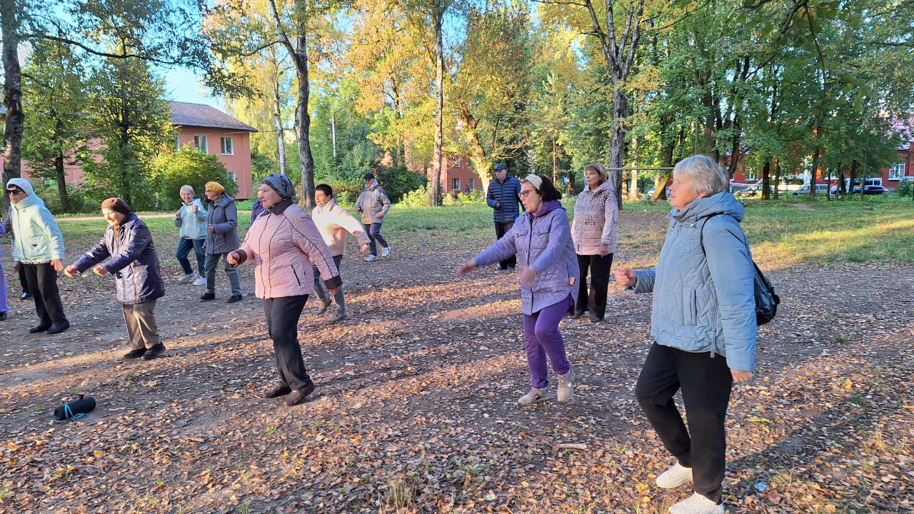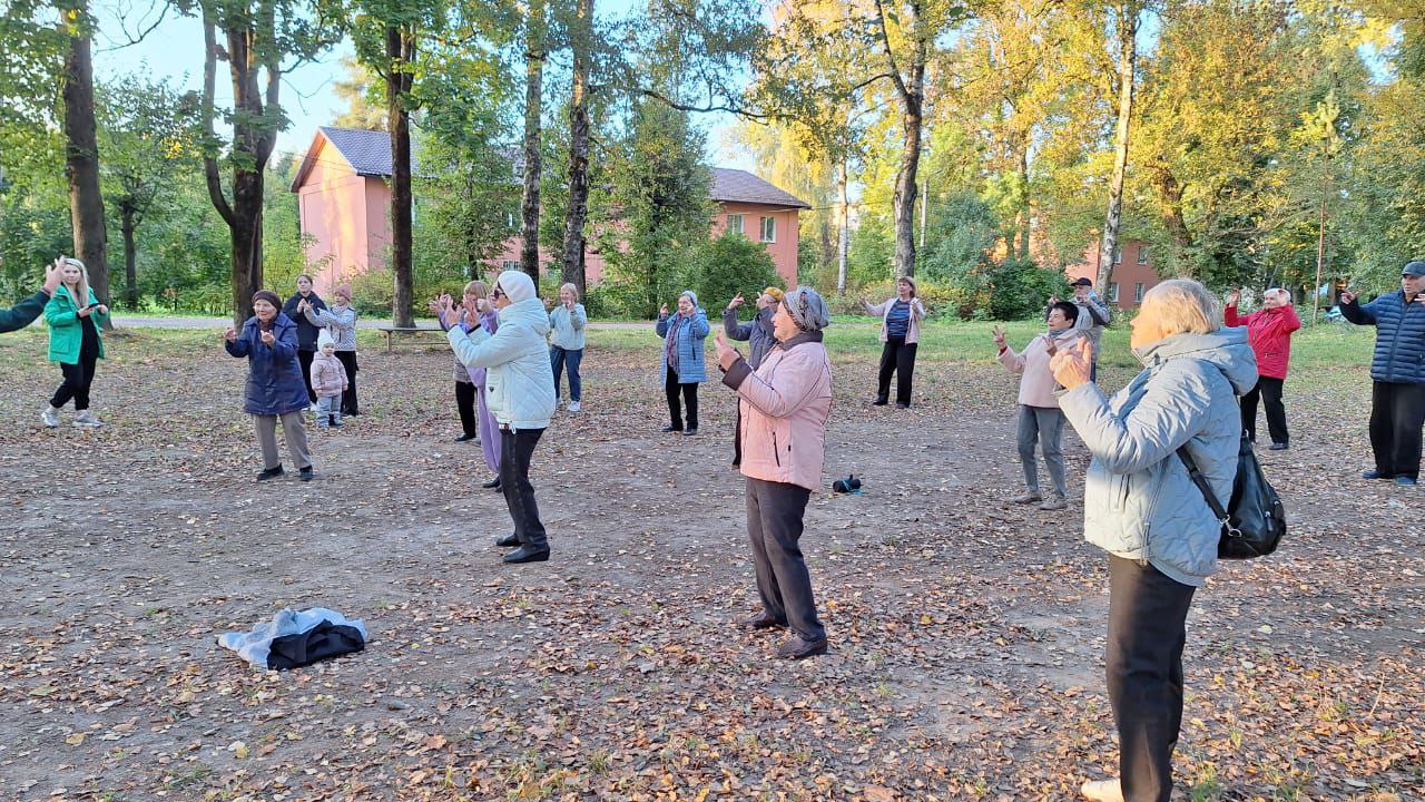 Занятие прошло задорно и весело: пожилые люди с удовольствием размялись на свежем воздухе, тем более что и погода пошла им навстречу, подарив по-настоящему золотой и бодрый осенний денек.