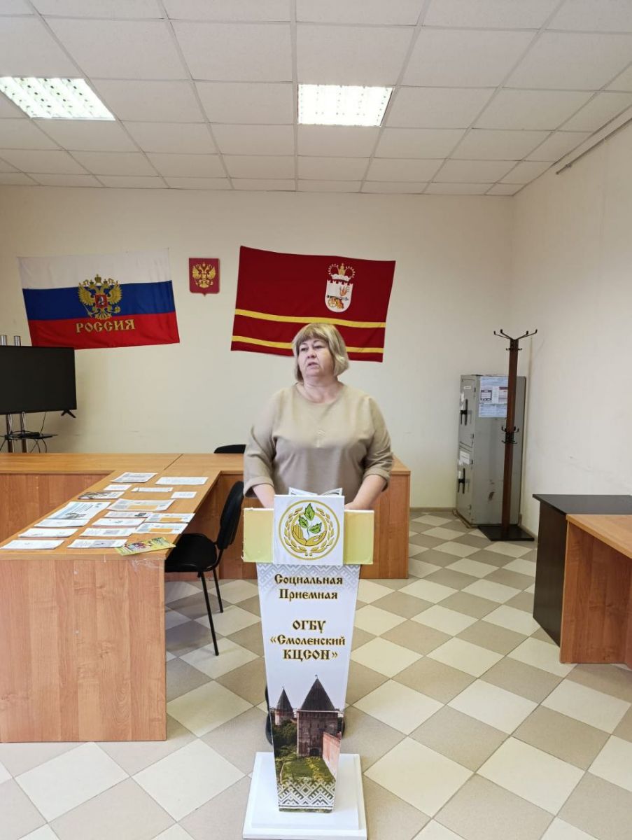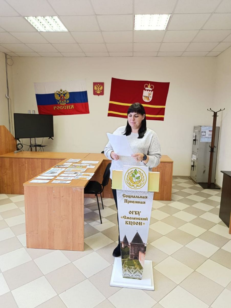 У сотрудника Смоленского комплексного центра интересовались работой Пунктов проката вещей для детей до трех лет и Пунктом проката ТСР, спрашивали об услугах, оказываемых социальными работниками.