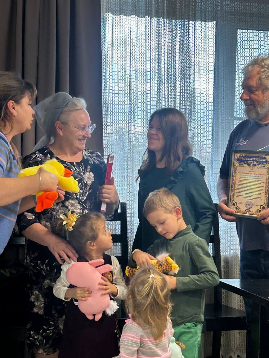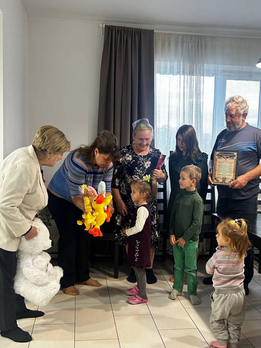 Директор ОГБУ «Смоленский КЦСОН» Инна Демидова вместе с ветераном и активной общественницей Инной Лавровой 15 октября побывали в Гнездово, в гостях у многодетной семьи Колесниковых.