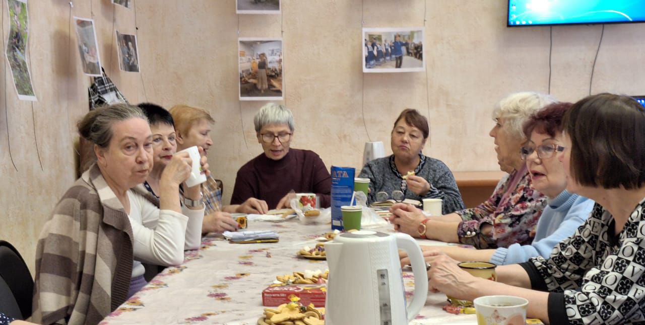Участники встречи с удовольствием спели любимые куплеты и познакомились с песенными симпатиями друг друга, а заодно пообщались за чашкой чая.