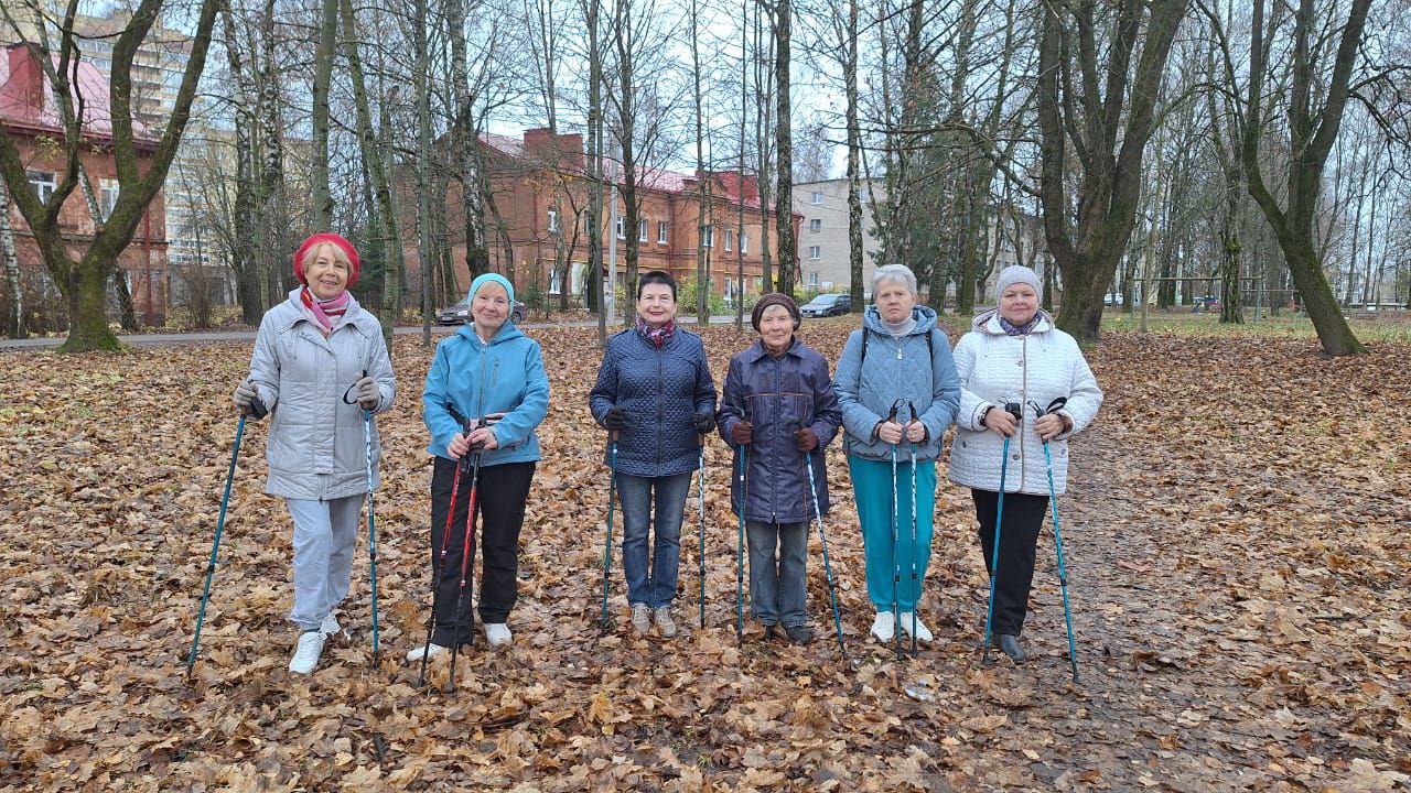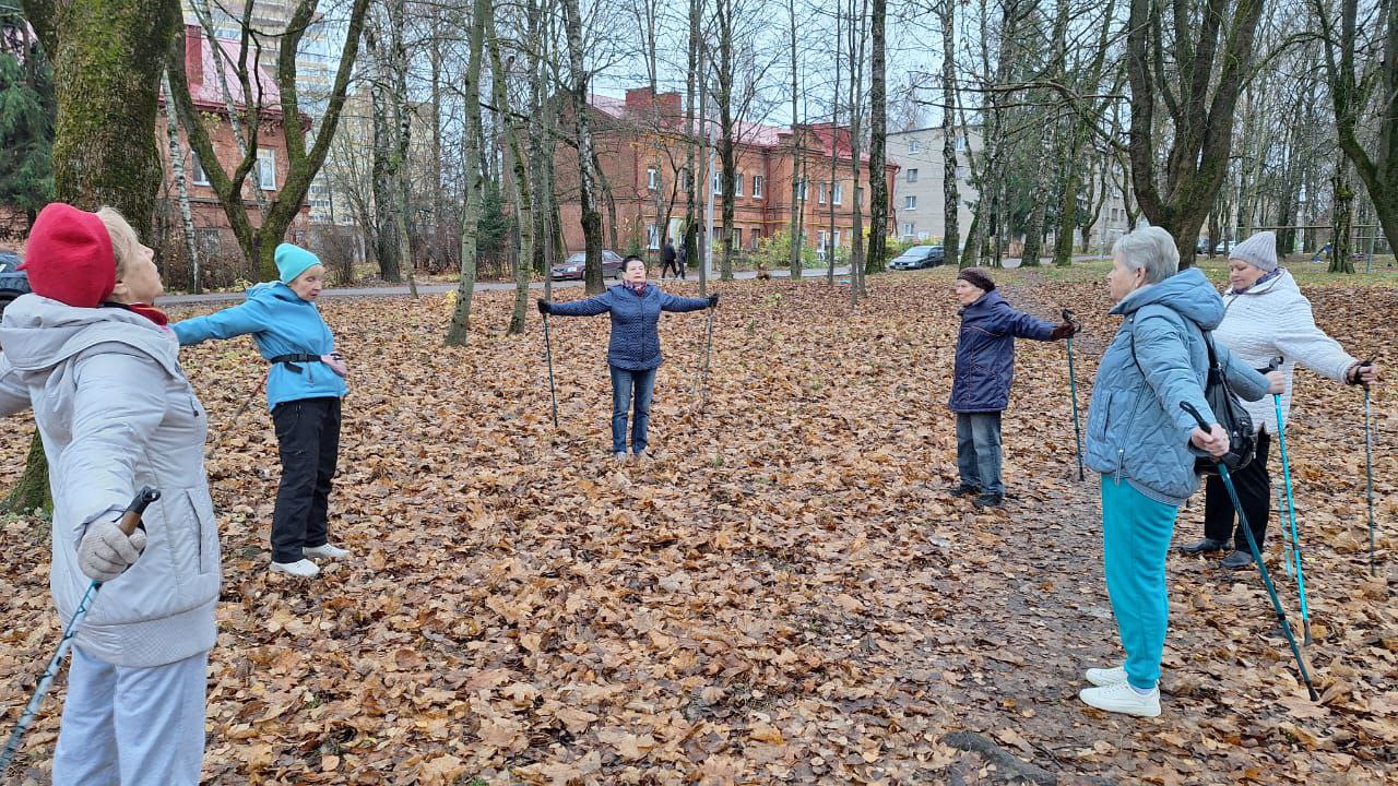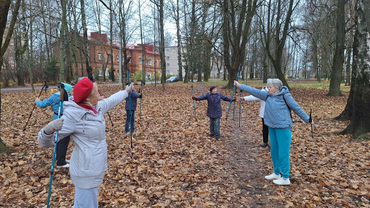 Участники программы «Активное долголетие» ОГБУ «Смоленский КЦСОН» - поклонники скандинавских тренировок. 10 ноября они выбрались в сквер в городке Коминтерна на очередное занятие.