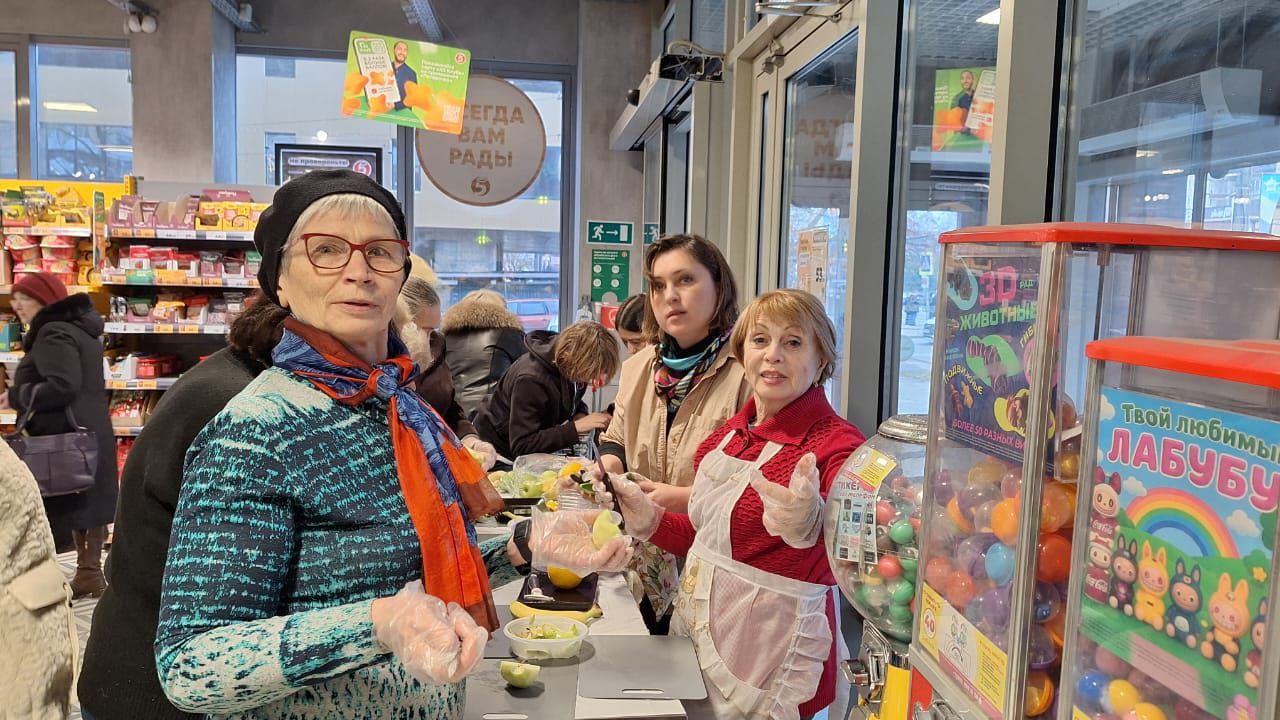 По приглашению руководителя отделения БФ «Старость в радость» - группы «Жить в радость. Смоленск» Анастасии Козловой они стали участниками мастер-класса «Фруктовый салат», который проводился совместно с сетью супермаркетов «Пятерочка».